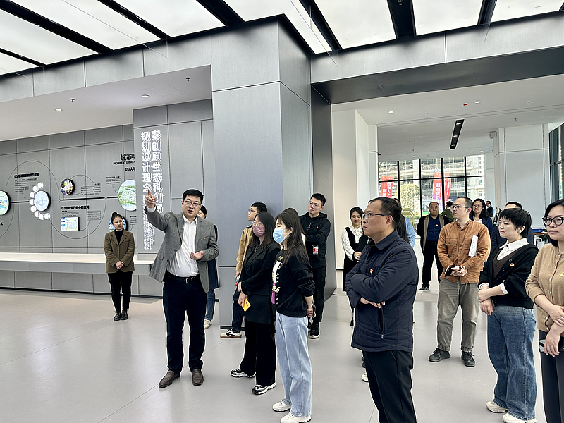 活動中,全體人員前往秦創(chuàng)原生態(tài)科創(chuàng)島城市規(guī)劃展廳,聽取講解員介紹秦創(chuàng)原生態(tài)科創(chuàng)島的整體規(guī)劃、產(chǎn)業(yè)配套、建設(shè)進(jìn)展等情況,集中觀看項(xiàng)目建設(shè)最新進(jìn)度視頻短片;接著參觀秦創(chuàng)原生態(tài)科創(chuàng)島沙盤模型,深入了解項(xiàng)目業(yè)態(tài)分布、建設(shè)進(jìn)展及載體招商等情況。隨后,雙方實(shí)地調(diào)研5單元6、8號樓項(xiàng)目現(xiàn)場,了解目前項(xiàng)目建設(shè)進(jìn)展情況,雙方圍繞新時代人才隊(duì)伍建設(shè)、科創(chuàng)載體招商工作等重點(diǎn)內(nèi)容開展交流研討。