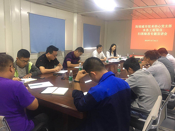 5月31日,海綿城市技術(shù)中心黨支部走進新渭沙濕地工程項目部開展水務(wù)工程項目全國兩會精神宣貫暨掃黑除惡專項斗爭宣講會,各項目施工單位、監(jiān)理單位項目經(jīng)理及工人代表參加會議。