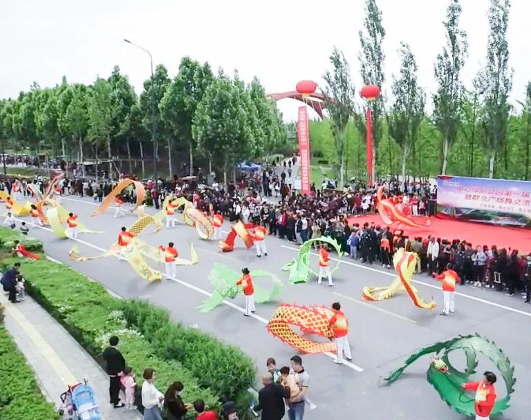 活動現場,舞龍隊身著盛裝,在震天鑼鼓聲中腳步輕盈歡快,金龍在舞龍隊的揮舞下擺出龍身彎繞、擺尾、龍頭昂揚的多種造型,大家舞姿驚艷,詮釋了運動快樂、運動有益的真諦,成為當天中心綠廊公園最靚麗的風景線。