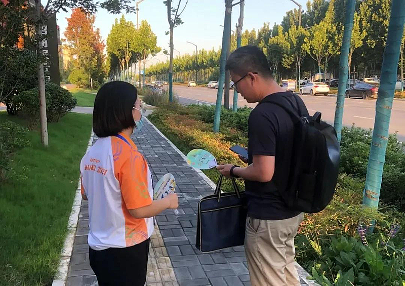 在一次志愿服務(wù)期間,她看到一名農(nóng)民工師傅下班路過西部云谷二期站崗?fù)r(shí),想要上前咨詢但又滿臉羞澀遲遲沒有開口,王寶花主動(dòng)迎上前詢問情況,原來是農(nóng)民工師傅想為他的孩子買一個(gè)十四運(yùn)紀(jì)念品。她主動(dòng)留下這名群眾的聯(lián)系方式,并告知其購(gòu)買地點(diǎn),同時(shí)為他贈(zèng)送了十四運(yùn)會(huì)紀(jì)念扇,并約定待志愿服務(wù)結(jié)束后可以將自己的志愿服裝送一件給小朋友。樸實(shí)的笑容綻放在師傅的臉上,他連連說道:“你們是優(yōu)秀的志愿者,給咱西安爭(zhēng)光咧!”