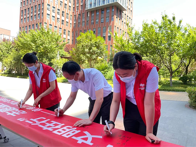 活動中,志愿者們還制做了“安全在心 文明在行”主題橫幅,到場志愿者和園區企業員工紛紛在主題橫幅上簽名,大家踴躍參與,現場氣氛熱烈。