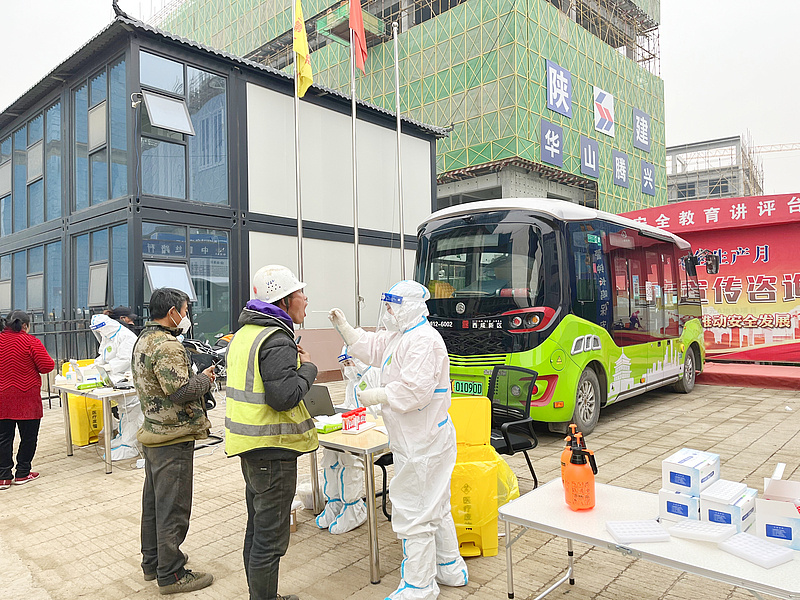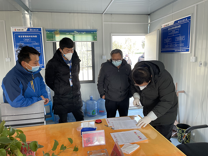 在秦創(chuàng)原生態(tài)科創(chuàng)島項(xiàng)目項(xiàng)目現(xiàn)場(chǎng),全面落實(shí)封閉管理措施,組織施工單位實(shí)行分單元模塊化管理方式,采取工人錯(cuò)峰就餐、分批次核酸檢測(cè)等多項(xiàng)措施,并積極做好疫情防控物資儲(chǔ)備及發(fā)放工作。