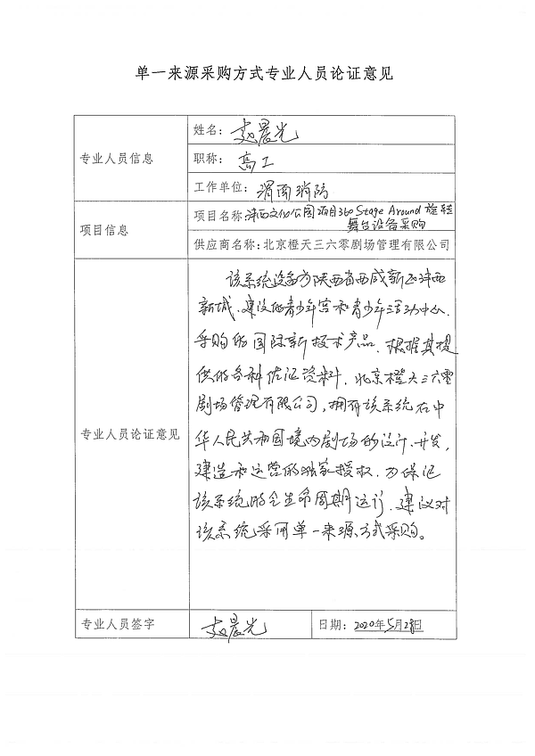 采用單一來源采購方式的原因及說明:該項目擬采購的機械及系統(tǒng)是為青少年宮及青少年活動中心采購的國際新技術(shù)產(chǎn)品,且橙天嘉禾投資有限公司具備國家知識產(chǎn)權(quán)局授予的“劇場結(jié)構(gòu)”實用新型專利(專利號:ZL 2018 2 1034718.2)。北京橙天三六零劇場管理有限公司為橙天嘉禾投資有限公司在西安使用該專利的唯一被授權(quán)人,且為該系統(tǒng)知識產(chǎn)權(quán)在中華人民共和國境內(nèi)獨家被授權(quán)人,滿足單一來源采購條件。專業(yè)人員具體意見詳見附件。