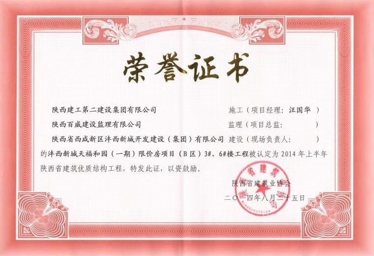 新業佳苑4#樓榮獲陜西省建筑優質結構工程