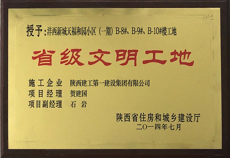 天福和園一期B8#、B9#、B10#樓工程榮獲陜西省建筑業綠色施工示范工程