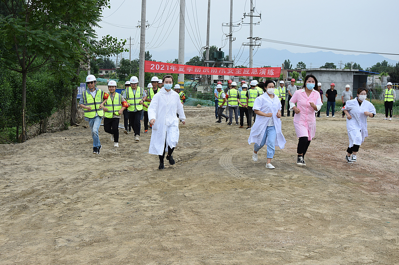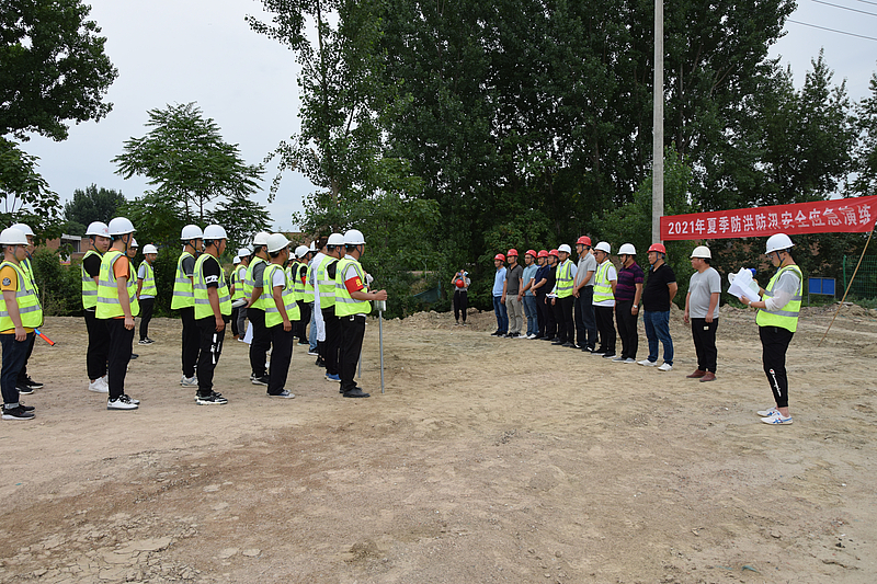 為提高全體人員對防汛應急工作的認識,檢驗防汛預案及搶險方案的必要性,提高各職能組之間的協調作戰能力,海綿城市技術公司于6月安全生產月之際,聯合新城農業農村局在新河防洪治理工程項目開展汛期防汛應急演練活動,模擬新河液壓壩部位漲水,即將突破警戒水位值的緊急情況。演練正式啟動后,演練總指揮處接到汛情報告,詳細了解險情各項情況,巡視組立即到達現場進行巡視并報告險情,各組前往指揮部受領任務并開展搶險救災。演練中,各小組在現場指揮下統一行動,搶險有序,及時有效控制潛在危險源。