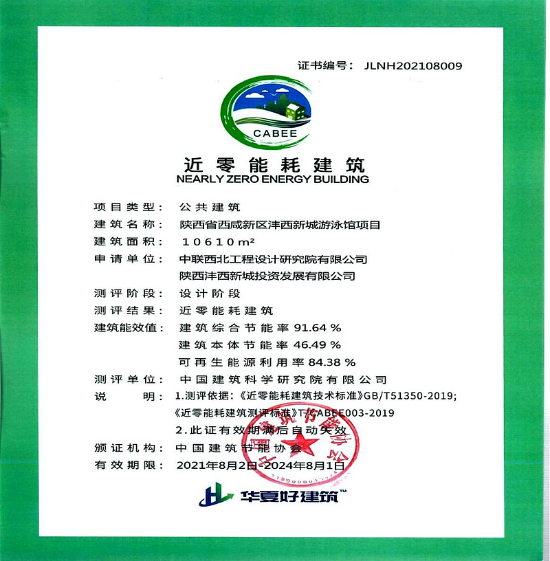 近日,西咸新區(qū)灃西新城游泳館項(xiàng)目獲設(shè)計階段“近零能耗建筑”證書,標(biāo)志著全國首個AAA級裝配式近零能耗游泳館在灃西新城誕生這也是灃西新城踐行綠色發(fā)展理念積極探索“碳達(dá)峰碳中和”實(shí)現(xiàn)路徑又一力作。