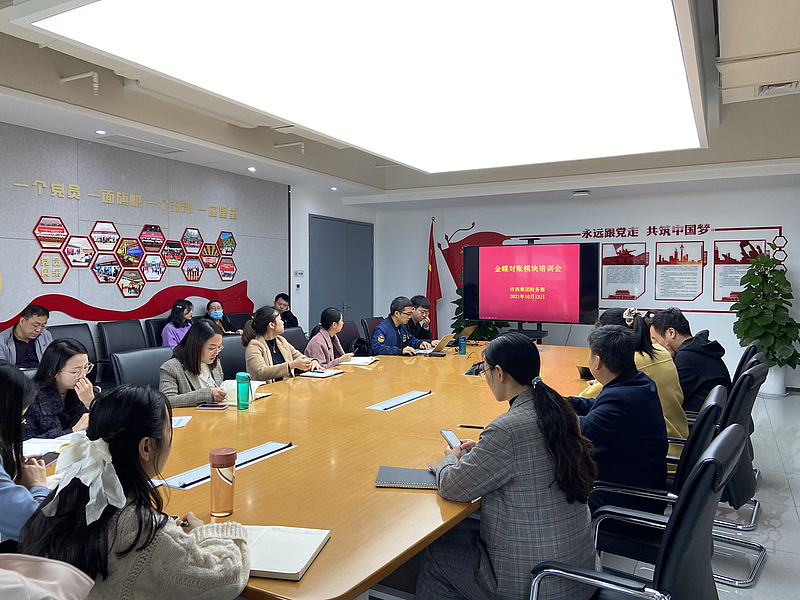 10月13日上午,灃西集團財務部組織召開金蝶對賬模塊培訓會,邀請金蝶公司實施經理張飛、顧問王蒙主講,財務部全體會計人員及各子公司(含代管公司)會計人員參加。