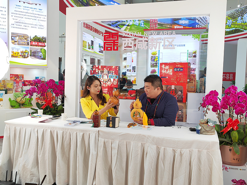非遺葫蘆——獨(dú)特的葫蘆造型、細(xì)致的烙畫手法吸引了眾多參觀人員,“妙筆生花”葫蘆、酒葫蘆讓大家愛不釋手。西安市非物質(zhì)文化遺產(chǎn)保護(hù)協(xié)會(huì)副會(huì)長(zhǎng)裴正明以線上直播的方式,對(duì)綠浪農(nóng)業(yè)公司非遺葫蘆進(jìn)行了專項(xiàng)產(chǎn)品推介,讓更多人了解了非遺葫蘆的魅力與特色。