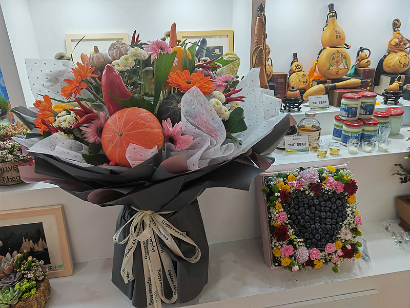 蔬菜禮盒,藍(lán)莓花盒——“原來蔬菜花束可以這么美啊”。鮮花圍繞包裹著蔬菜、藍(lán)莓,不但時(shí)尚好看,而且還實(shí)用,賞完造型還能吃,滿滿都是心意。