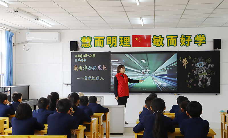 “我為群眾辦實事”實踐活動開展以來,投資公司成立黨員先鋒隊,深入一線開展多項活動。為提升新城建設者們的安全生產意識,黨員先鋒隊先后赴管廊控制中心、商砼站等項目現場進行安全生產專題宣講20余次;為拓寬莘莘學子的課外視野,先鋒隊走進學校,將酷炫的管廊機器人等科技知識帶到灃西一小、灃西實驗學校學生的課堂中,惠及學生700余人次。