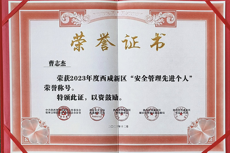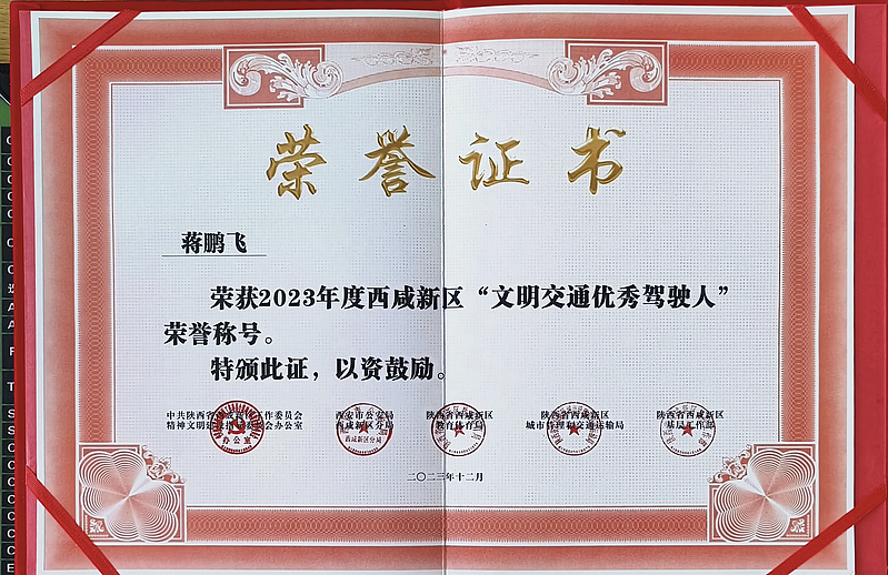 今年7月以來,西咸新區(qū)黨工委文明辦、市公安局西咸新區(qū)分局、西咸新區(qū)教育體育局、西咸新區(qū)城市管理和交通運輸局、西咸新區(qū)基層工作部等部門在全區(qū)聯(lián)合開展2023年度“文明交通示范集體和先進個人”創(chuàng)建評選活動。經(jīng)評審,灃西集團投資公司全資子公司—西咸新區(qū)大城物聯(lián)科技服務有限公司(以下簡稱“大城公司”),榮獲“文明交通示范企業(yè)”榮譽稱號,員工曹志杰榮獲“安全管理先進個人”榮譽稱號,朱華鋒、蔣鵬飛榮獲“文明交通優(yōu)秀駕駛?cè)恕睒s譽稱號。