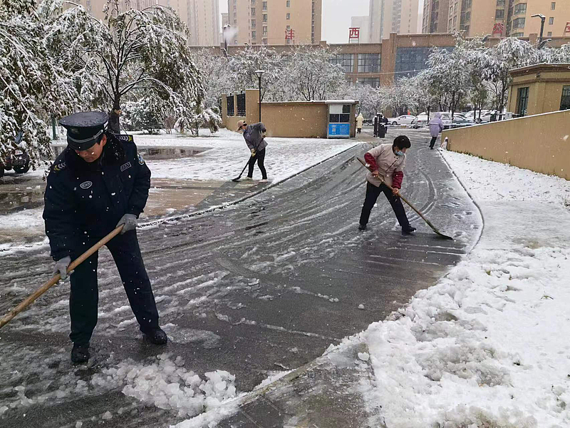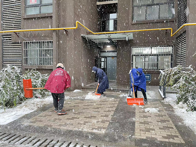 雪景雖美,但出行不易。服務(wù)公司組織人員重點對小區(qū)、園區(qū)、學(xué)校主干道、樓棟門口、地庫入口等區(qū)域進行清掃,檢查搶修相關(guān)設(shè)施設(shè)備,志愿者們主動參與,及時清除屋頂、雨水管、排水溝等積雪,協(xié)力保障業(yè)主、師生出行安全暢通。大家分工明確,配合默契,堅守在除雪一線,展現(xiàn)出了物業(yè)人的擔(dān)當(dāng)作為。