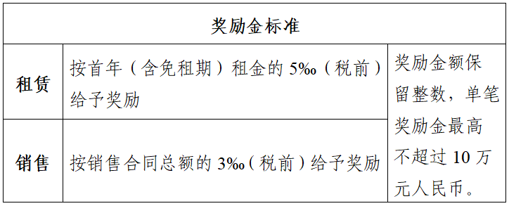 (二)租賃:租賃客戶簽署租賃合同,并付清租賃保證金及首年租金后,一次性兌現(xiàn)獎勵金。