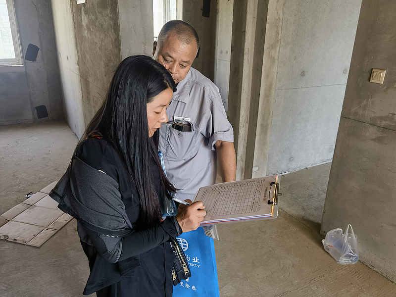 在驗(yàn)房過(guò)程中,灃西服務(wù)提供“一對(duì)一”式驗(yàn)房服務(wù),工程維修全程貼心陪伴,讓業(yè)主能夠直觀地看到房屋的品質(zhì),即時(shí)拍照、現(xiàn)場(chǎng)文字記錄查驗(yàn)發(fā)現(xiàn)的問(wèn)題,耐心傾聽(tīng)業(yè)主反饋,并做好現(xiàn)場(chǎng)解答,真正從業(yè)主角度出發(fā)去查驗(yàn)房屋,從而提升驗(yàn)房效率和客戶(hù)滿意度。