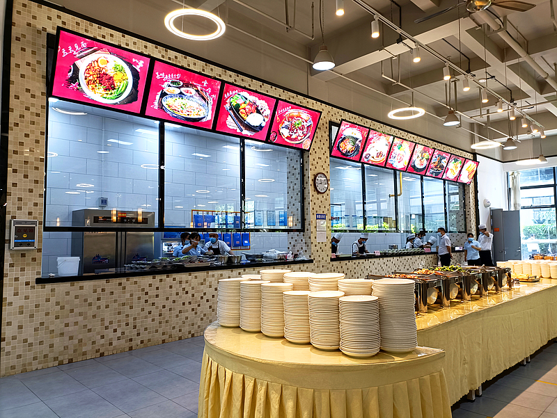 多樣化現代餐飲服務:自主運營員工餐廳5家+社會餐飲1家,外包監管餐廳1家,餐廳均配備現代化廚房設備,從食材清洗到烹飪加工,全程遵循食品安全規范,用餐區設立有自助取餐區、快捷套餐區,提供多樣化、標準化的品質服務。