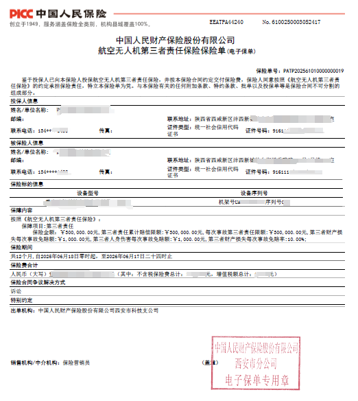 該保險為投保企業(yè)提供了30萬元的風(fēng)險保障,主要針對無人機(jī)在試飛過程中可能對第三方造成的人身傷害和財產(chǎn)損失進(jìn)行賠付,不僅幫助企業(yè)有效轉(zhuǎn)移潛在風(fēng)險,也為周邊居民和單位的安全提供重要保障。