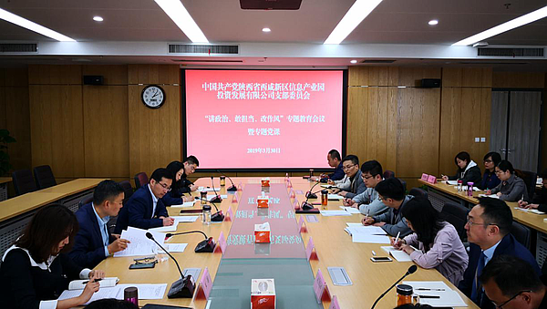 3月30日,信息產業園公司在第一會議室召開“講政治、敢擔當、改作風”專題教育會議暨專題黨課。