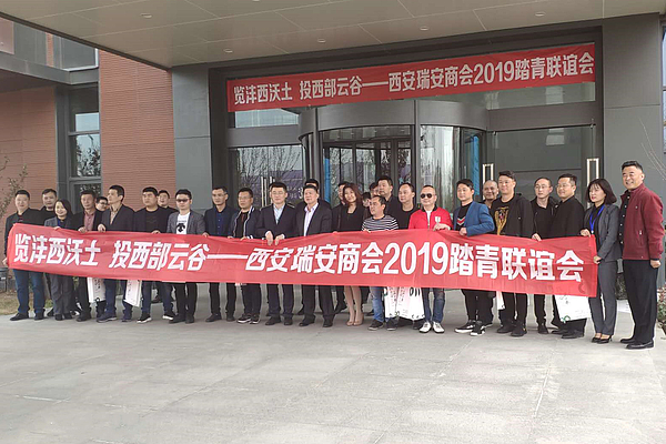 3月26日信息產業園公司舉辦“覽灃西沃土 投西部云谷”--西安瑞安商會2019年踏青聯誼會。西安瑞安商會會長和會員企業代表、重要客戶等共50余人對灃西新城重大項目進行考察。