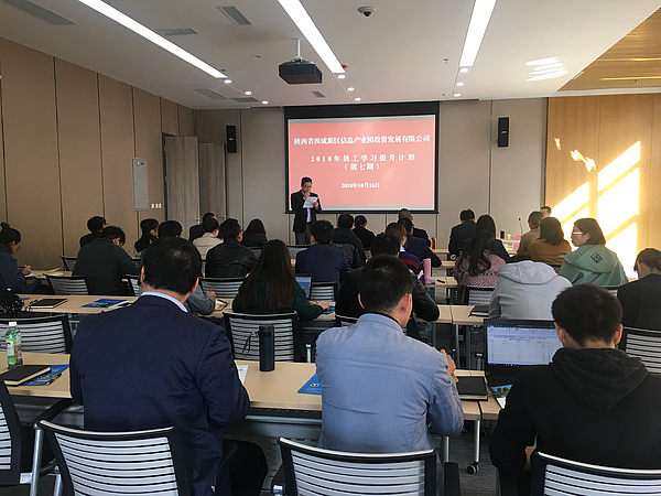 10月26日,信息產(chǎn)業(yè)園公司聯(lián)合園區(qū)非公黨支部組織開展2018年第七期員工學(xué)習(xí)提升計劃暨云谷大講堂活動。活動邀請西安電子科技大學(xué)MPA教育中心李雄軍博士,作“以《曾胡兵法》看園區(qū)發(fā)展”的主題講座,公司干部員工及企業(yè)代表60余人參加培訓(xùn)活動。