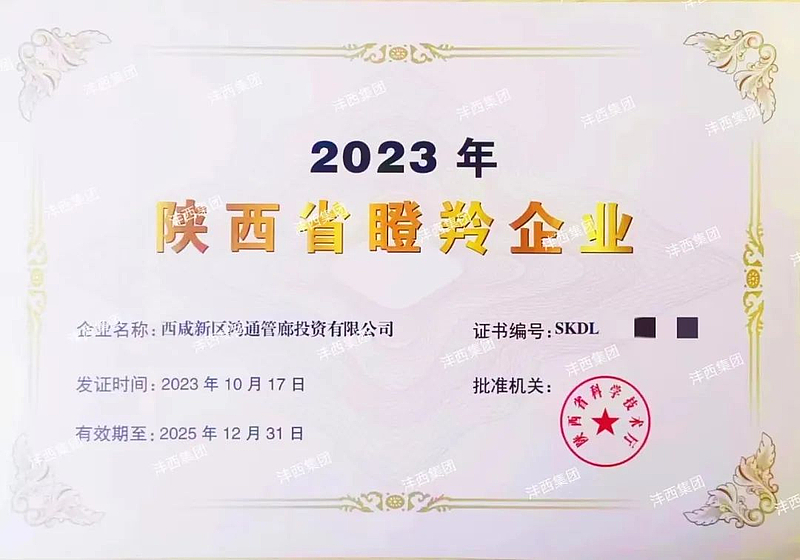 近日,陜西省科學技術廳公布2023年陜西省瞪羚企業名單,灃西集團投資公司全資子公司—西咸新區鴻通管廊投資有限公司(以下簡稱“管廊公司”)光榮上榜!