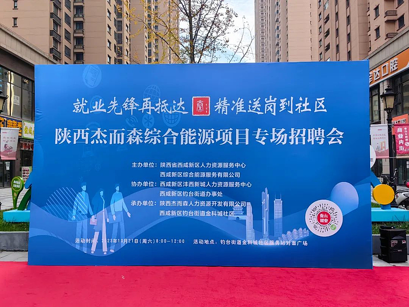 為扎實推進西咸新區2023年“秦云就業”暨“就業先鋒”就業服務進社區活動,進一步促進區域內重點人員就業,2023年10月21日,由陜西省西咸新區人力資源服務中心、西咸新區綜合能源服務有限公司(以下簡稱:綜合能源服務公司)主辦,西咸新區灃西新城人力資源服務中心、西咸新區釣臺街道辦事處協辦,陜西杰而森人力資源開發有限公司、西咸新區釣臺街道金科...
