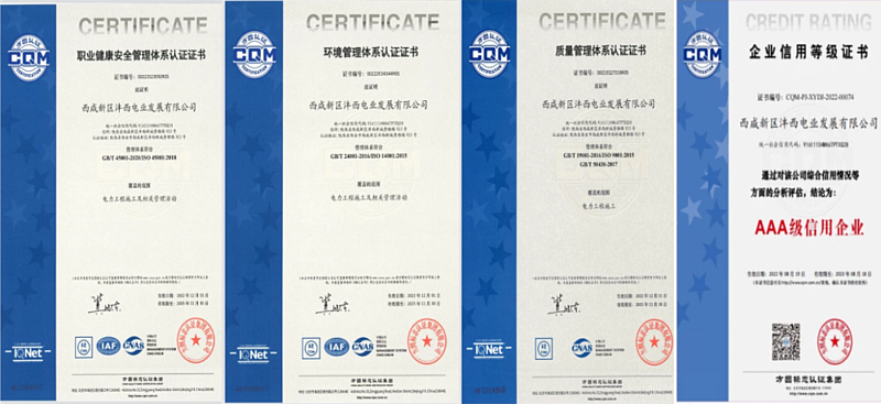 電業公司繼今年8月獲得權威認證機構AAA級信用等級認證證書后,2022年12月,順利通過第三方認證中心的專項審核,獲得ISO9001:2015標準的質量管理體系認證、ISO14001:2015的環境管理體系認證、ISO45001:2018的職業健康安全管理體系認證證書。