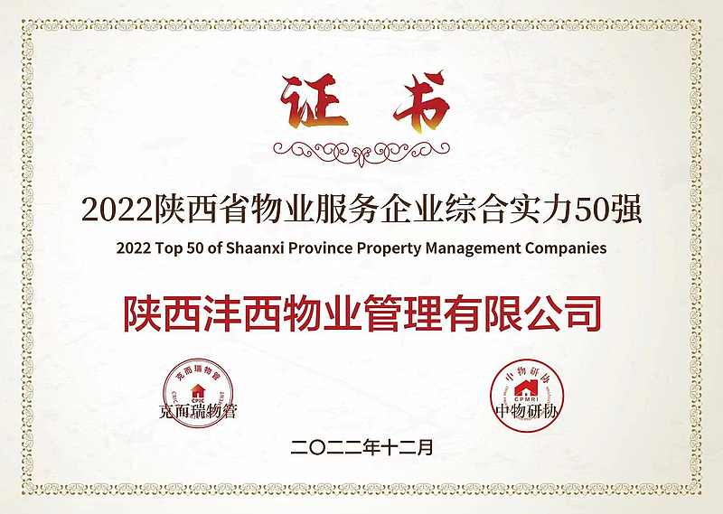 12月26日,克而瑞物管與中物研協聯合發布了2022陜西省物業管理行業發展報告,同期揭曉“2022陜西省物業服務企業綜合實力50強”,灃西集團物業公司憑借優異的綜合實力名列其中。未來,物業公司將繼續匯聚黨建紅色力量,緊跟新城、集團發展步伐,堅守初心,秉持匠心,把握市場發展趨勢,乘勢而上,以百倍用心換客戶十分滿意,擦亮灃西物業高品質、多樣化...