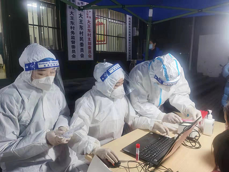 早上5點,天還未亮時,劉恒希顧不上吃早飯便啟程前往客省莊村,到達后他便與同事開始了緊張而忙碌的核酸檢測秩序維護工作,在新一輪核酸檢測完成后,他又立刻投入到“敲門行動”中,挨家挨戶上門詢問村民核酸檢測情況、是否有生活困難等。劉一博將村民安全送至家中疫情防控工作開展以來,劉一博已進行下沉一線工作6輪次,日工作時長經常超過8小時。