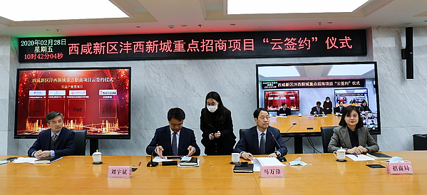 2月28日上午,西咸新區(qū)灃西新城重點(diǎn)招商項(xiàng)目“云簽約”儀式在總部經(jīng)濟(jì)園5號(hào)樓第一會(huì)議室舉行。