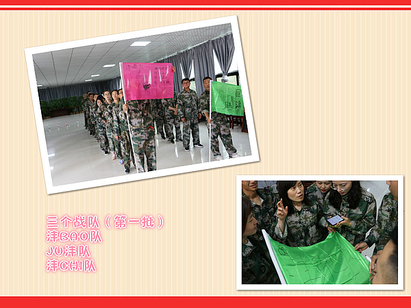 短短半個小時的破冰開營,參訓人員迅速進入培訓狀態。在教練的指導下,各自組隊,確定了隊名、隊歌、口號,設計了logo,進行了團隊風采展示。對抗賽正式拉開帷幕。