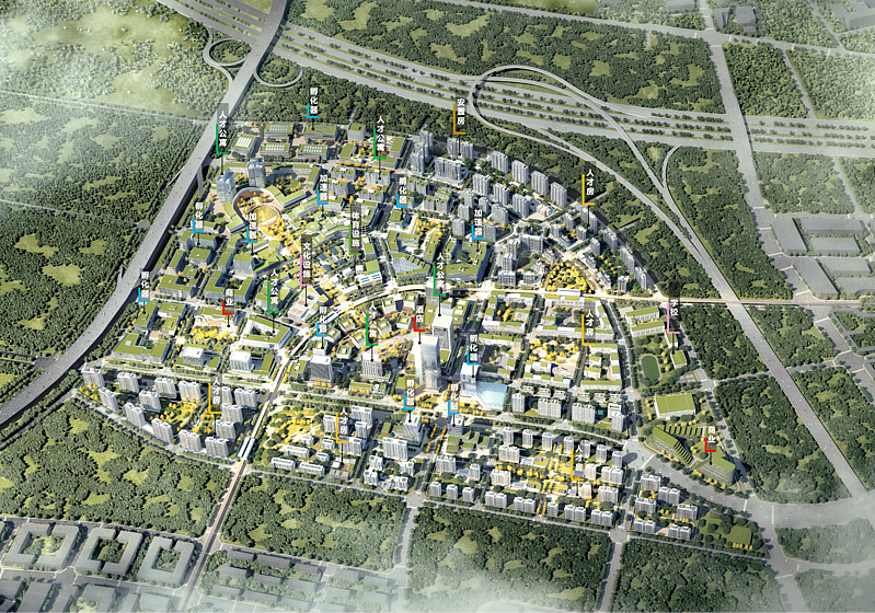 A板塊規(guī)劃設計對標雄安新區(qū),通過貫徹小鎮(zhèn)形態(tài)、山水林田湖草、小路密網(wǎng)、龜背式地形、全域海綿、明溝排水、新型能源、公交優(yōu)先、TOD模式、智慧健康園區(qū)、地下整體開發(fā)、圍合式建筑、綠色低碳建筑等特色開發(fā)理念,應用建筑垃圾再生利用、中水灰水利用、裝配式建筑等新技術,建設城市特色突出、創(chuàng)新驅動強勁、綠色低碳鮮明、綜合治理先進的絲路城、科學城、公園城、智慧城,打造滿足人民幸福生活需求的未來城市典范。