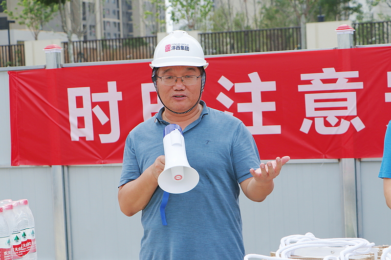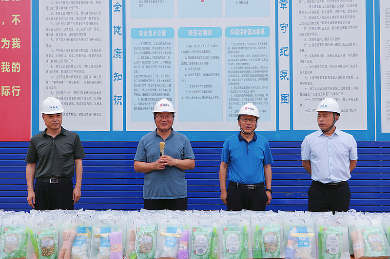 7月26日下午,灃西集團黨委書記、董事長楊建柱,總經理郭廷喜帶隊赴在建項目現場開展夏季“送清涼”慰問活動,副總經理秦繼紅、張桂林參加。