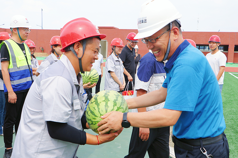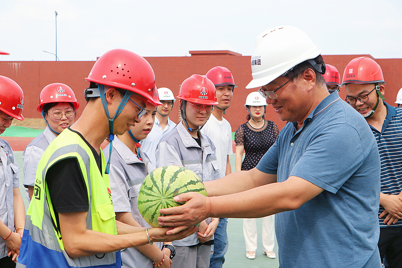隨后,楊建柱一行將精心準備的涼茶、西瓜、冰袖等防暑降溫物資送到堅守在開發建設和管理一線的勞動者們手中,對大家在高溫天的持續堅守和辛勤勞動表示感謝。