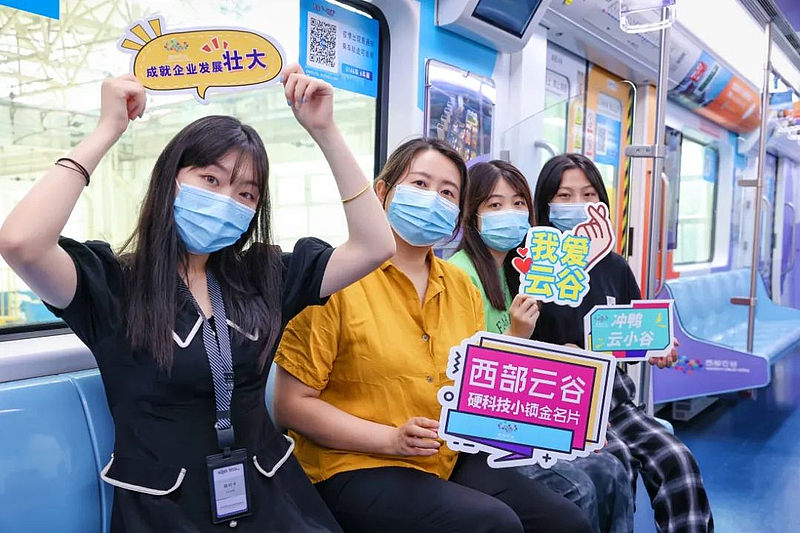 7月31日,西安地鐵一號線,一輛滿載“云谷元素”的列車,緩緩進站...