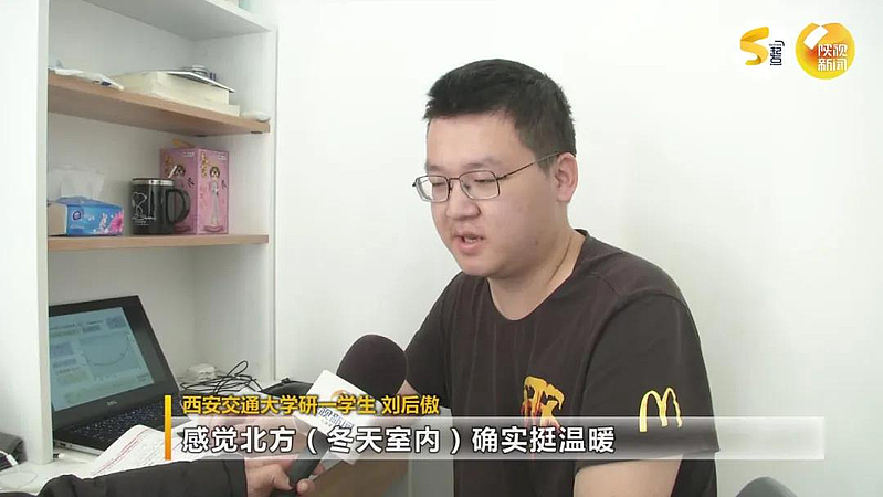 這兩天西安的氣溫只有幾攝氏度,在西咸新區灃西新城西安交通大學西部創新港校區的宿舍,來自南方的學生劉后傲對自己在北方的第一個冬天,留下了“溫暖”的印象。