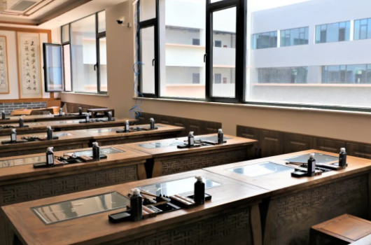 音效保障:為保證老師講課效果并避免聲音擴散,在前后墻面采用吸音板并內填吸音棉,以保證吸音效果。同時,教室安置聲麥設施,有效提升老師、學生音量,確保教學過程中老師與學生之間的有效溝通。